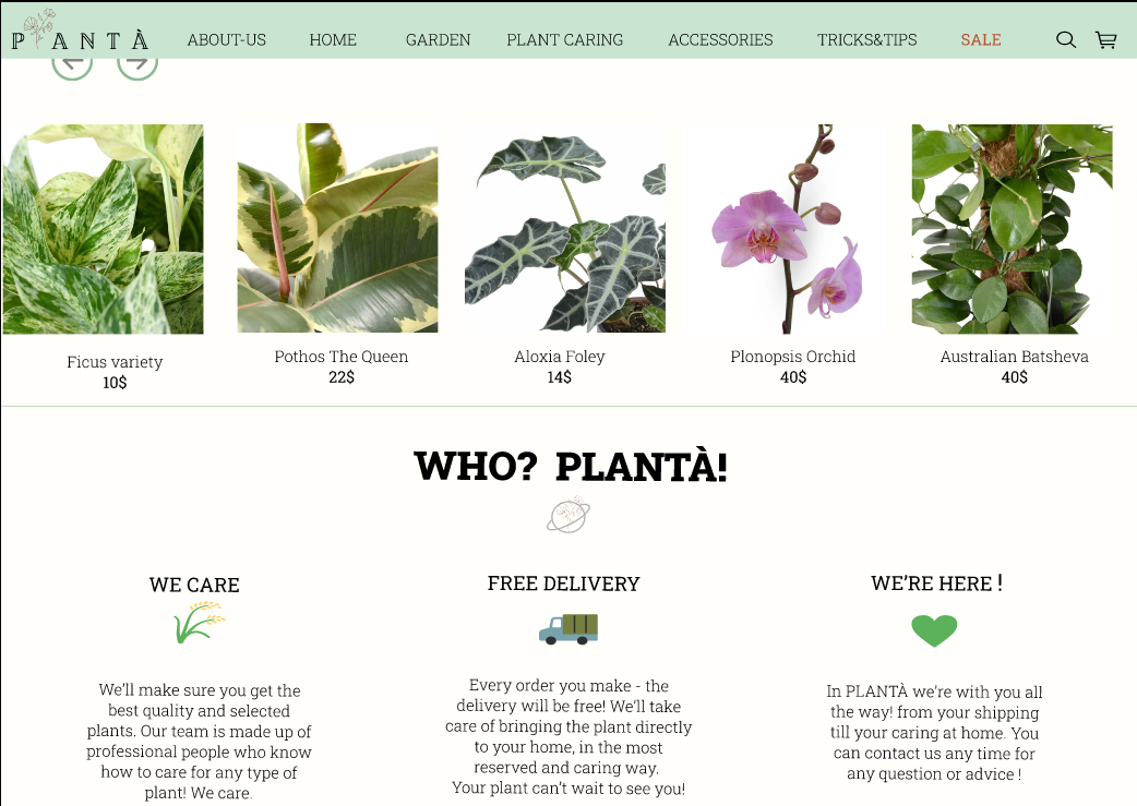 My goal in the design was to create a pleasant, warm feeling. The website logo is made out of two words put together, the first one being plant (English) and the second one being planeta (Hebrew) to convey the message that plants are a whole world that is open for everyone